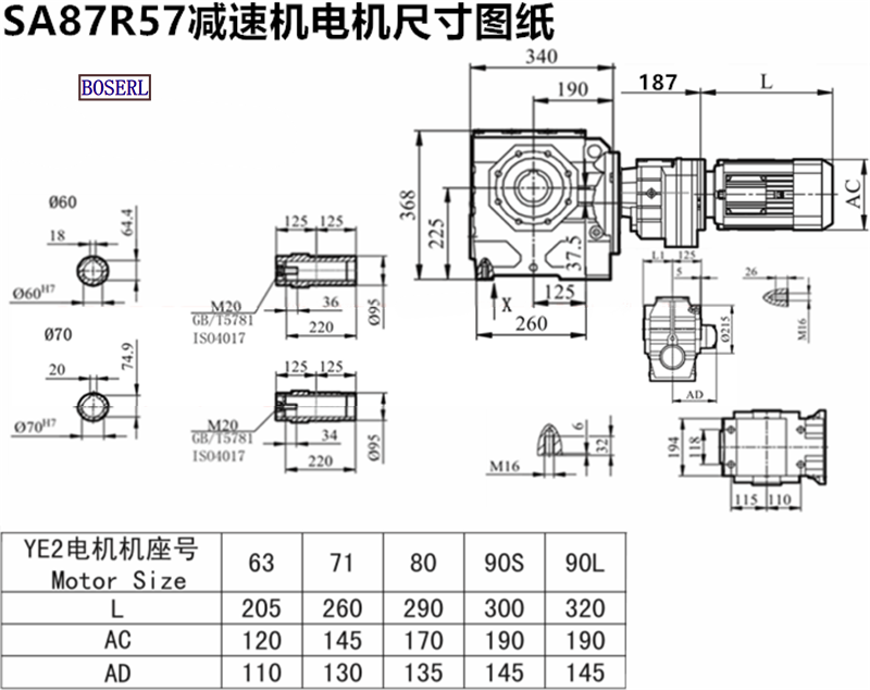| 蝸輪蝸桿減速機(jī) | SA88R58YP80M4 | SA88R58DRE71S4 | SA88R58DRL71M4 |